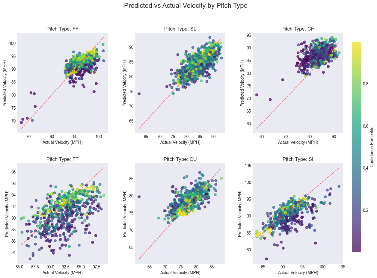 Claude confirmed my suspicions and, after I asked, suggested we only consider the final 20% of stages in each Gradient Boost model for the sake of computing confidence. It then suggested the following code to create a single dataframe that could provide confidence comparisons by pitch type.