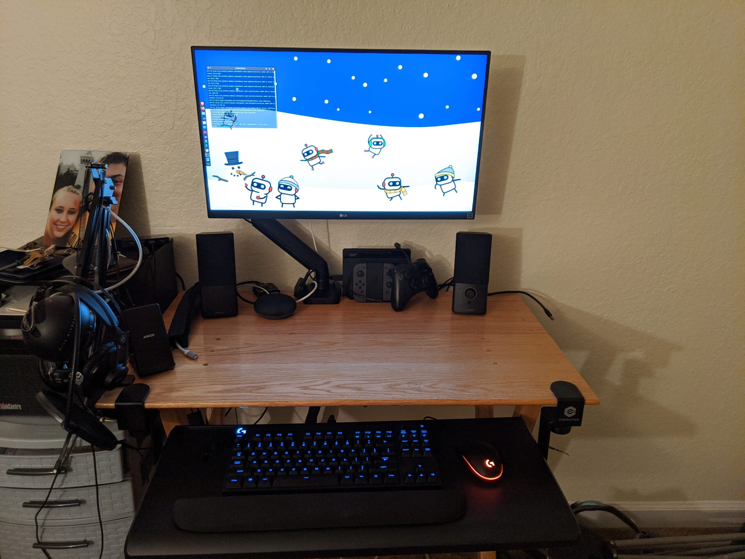 I did a decent job with my desk setup in my apartment. I switched between a laptop and a desktop, and also used my monitor for a Roku and a Nintendo Switch. It was an all-in-one spot where I spent all my time if I wasn’t eating or outside. My dad made this desk—it actually folds up—for my senior year of college. I don’t have a picture of that desk setup, but this was a natural evolution once I moved into my own place.